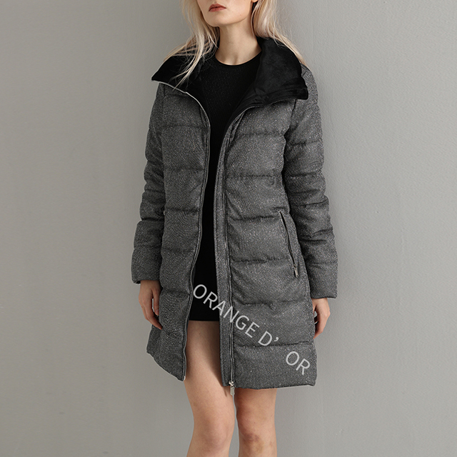 展品簡介:中長款樣式,翻領領型,收腰設計拉長身材比例,塑造腰部曲線,舒適保暖,適合歐美及南美時裝公司。