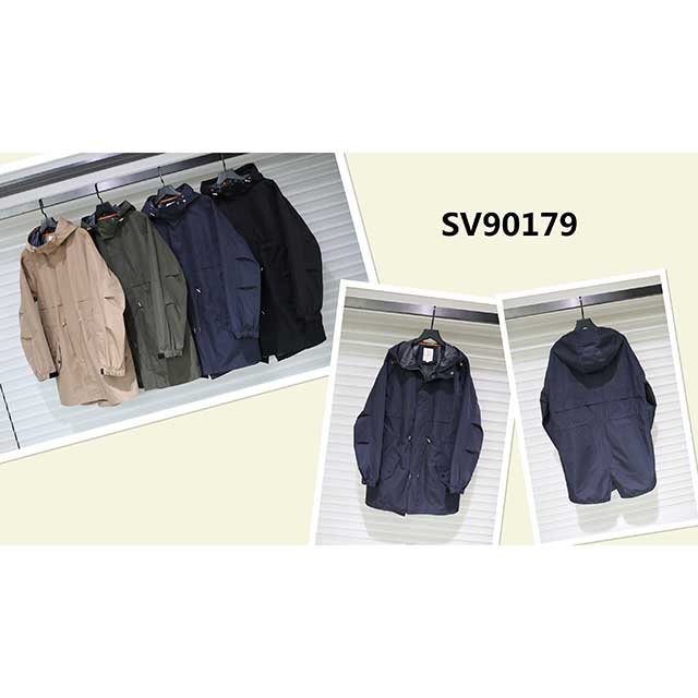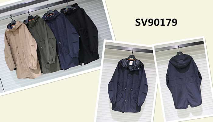 展品簡介:中長款樣式,雙側口袋設計,抽繩收腰設計,連帽款,簡潔時尚,適合南美及歐美商超。